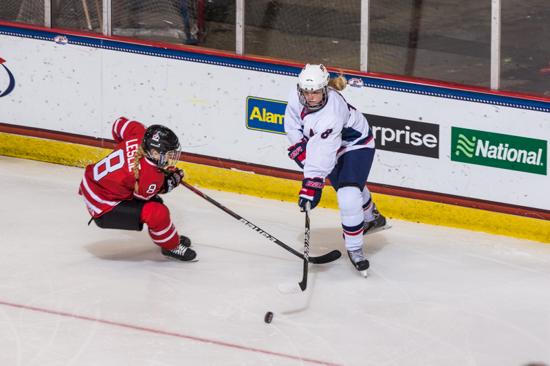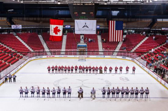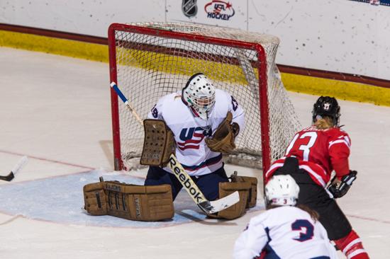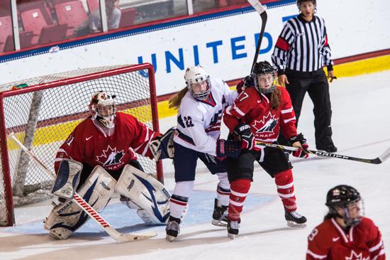 A closely contested first period heated up during the final minute of the frame with Canada taking a 1-0 lead at 19:25 on a goal by Kerly Heffernan. Taylar Cianfarano (Oswego, N.Y.) responded just 17 seconds later, poking the puck away from a defender and firing a shot over the shoulder of Canadian goaltender Shea Tiley to tie the game heading into the intermission.